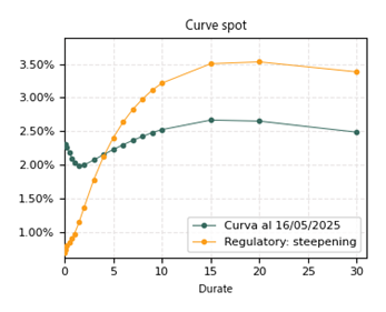 Ogni scenario è modellato attraverso un’espressione algebrica che produce un preciso spostamento della curva spot. Questo consente di modellare shock paralleli e di replicare gli scenari non paralleli previsti dagli Orientamenti EBA.
